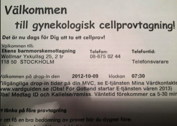 Fig. 3. A letter about a smear test from a DOCTOR’S surgery in Sweden: