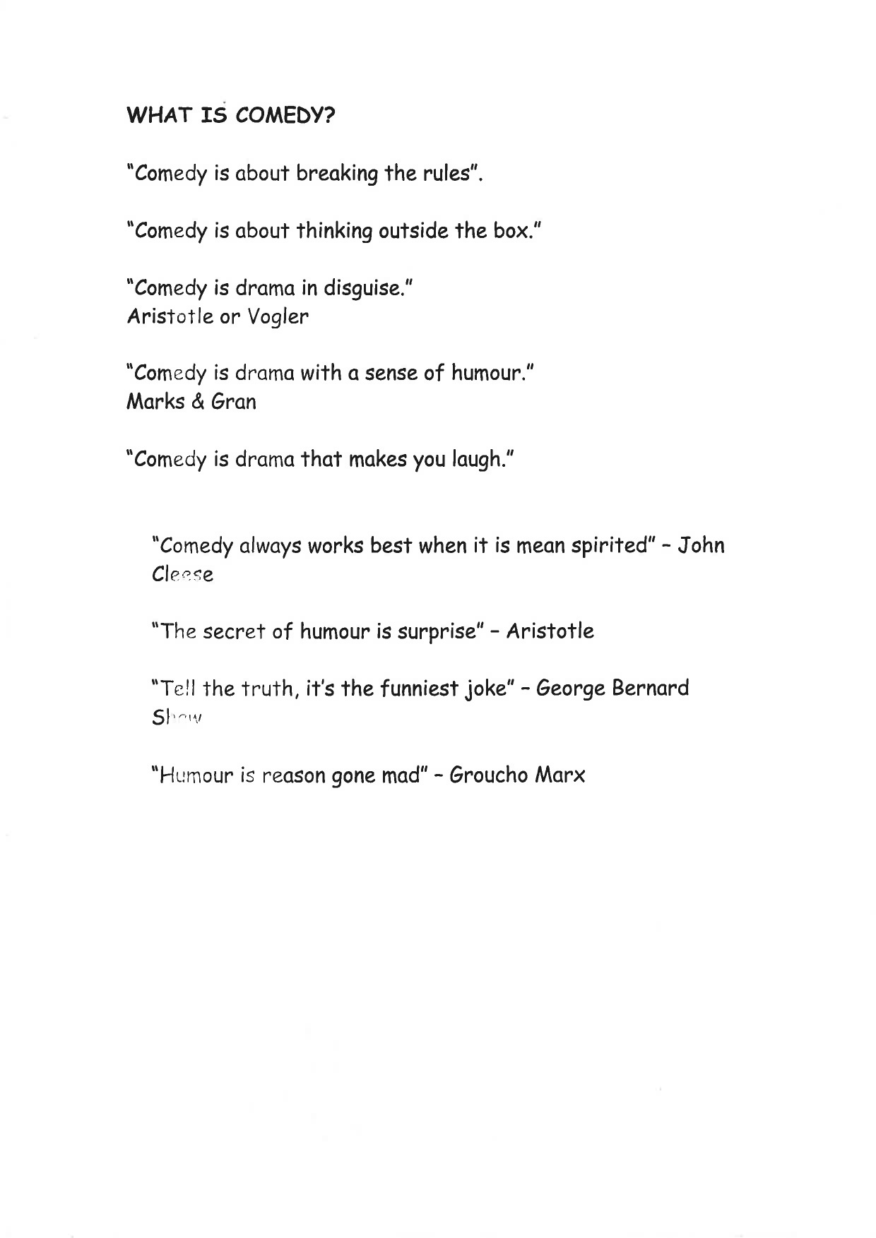 Fig. 6. Some ‘handouts’ given to us on a COMEDY course. (Needless to say that it wasn’t the most insightful course on the inner subtleties of humour. But you’ll clock that for yourself when you read point two).