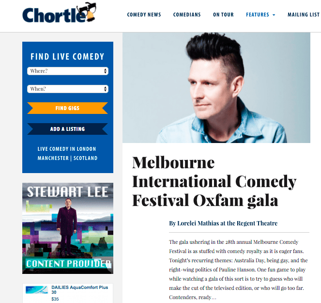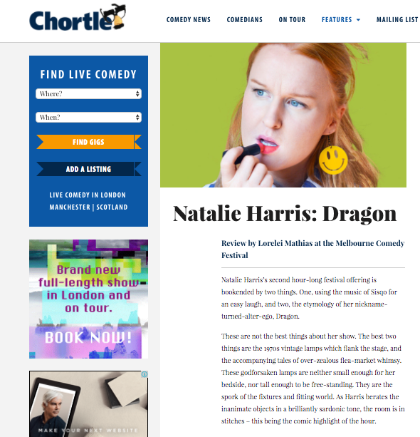 In March 2017 I wrote comedy reviews for Chortle.co.uk, the UK’s premier comedy resource.