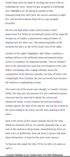 Here’s my review of one of the Melbourne International Comedy Festival’s opening galas on Wednesday 24th March 2017.