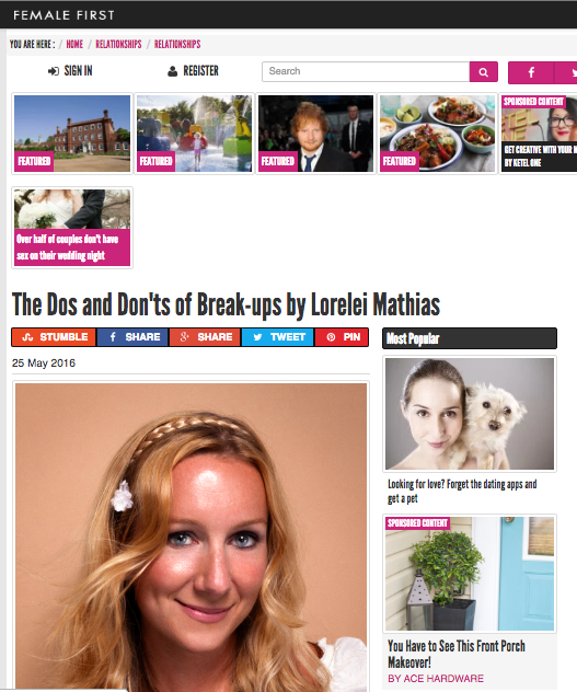 A piece I wrote for Female First Magazine on the ‘Do’s & Don’ts of Break-Ups’ – because they’re the pits, aren’t they?