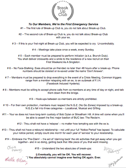 That’s why the Break Up Club was first founded in 2010, by Olivia Mahoney, Harry McGregor, and Bella Allen.