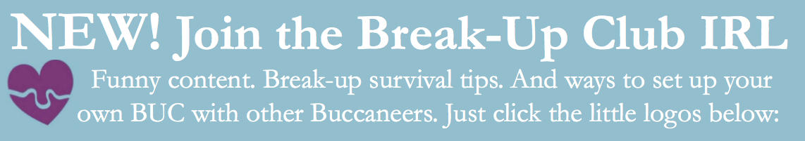 Thanks for stopping by, Buccaneers. Here to play you out, is the official Break-Up Club sound-track… your essential audio-guide to the highs, lows, woes and mega-highs of your break-up.