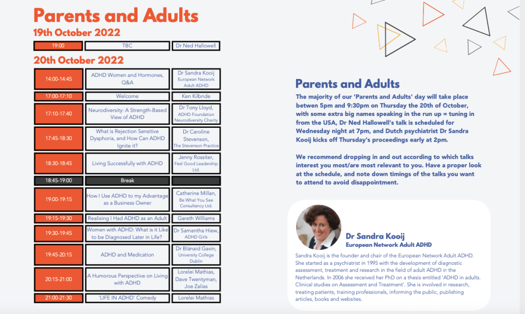 “Get ready for the largest ADHD conference in Europe, brought to you by ADHD Ireland and the ADHD Foundation Neurodiversity Charity! Bringing together global experts, leaders and thinkers, this forward-thinking conference is for all those affected by ADHD. We will lead insightful and inclusive discussions, exploring what needs to be done to enable those with ADHD to thrive, and pushing for progress.