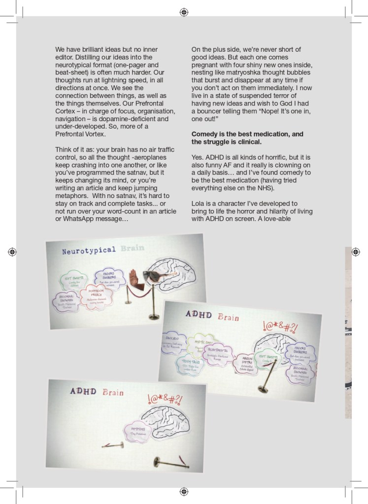 Commissioned to write for Edinburgh TV Festival’s ‘Reflections’ magazine, I wrote about my scheme to make the creative industries more accessible to neurodivergents. (More about the scheme here, and how you can sponsor us!) Scroll to read the article below, and an interview with BBC Radio Scotland.