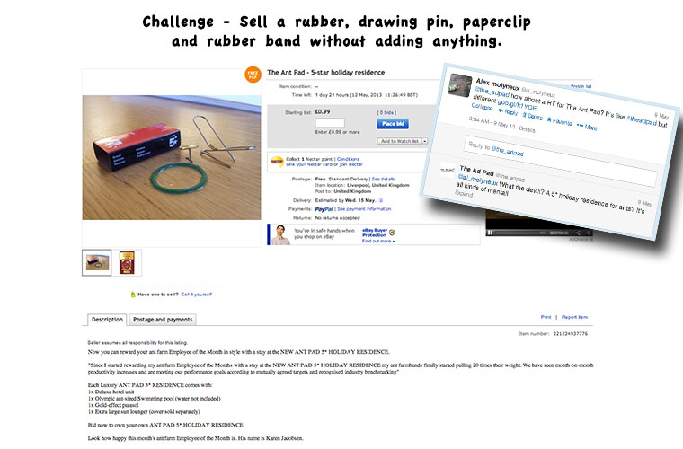 It wasn’t enough that their old classmates were going to be at BMB while they were busy doing their month’s worth of live briefs here. No. To make the whole course hate them that little bit more, their tutor Tony had Richard & Jolyon set their old peers a brief. Interestingly, this brief produced some of the best work. And Trev’s personal favourite: The Ant Pad: a five star retreat where only the luckiest, pluckiest of ants get to go and take a load off.