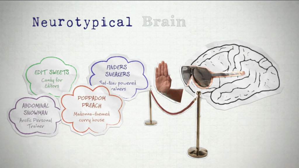 It won’t be everyone’s cup of tea but do check it out and take it in the spirit it’s meant: to find a way to laugh at the challenges of neurodiversity, and also to celebrate its power too.